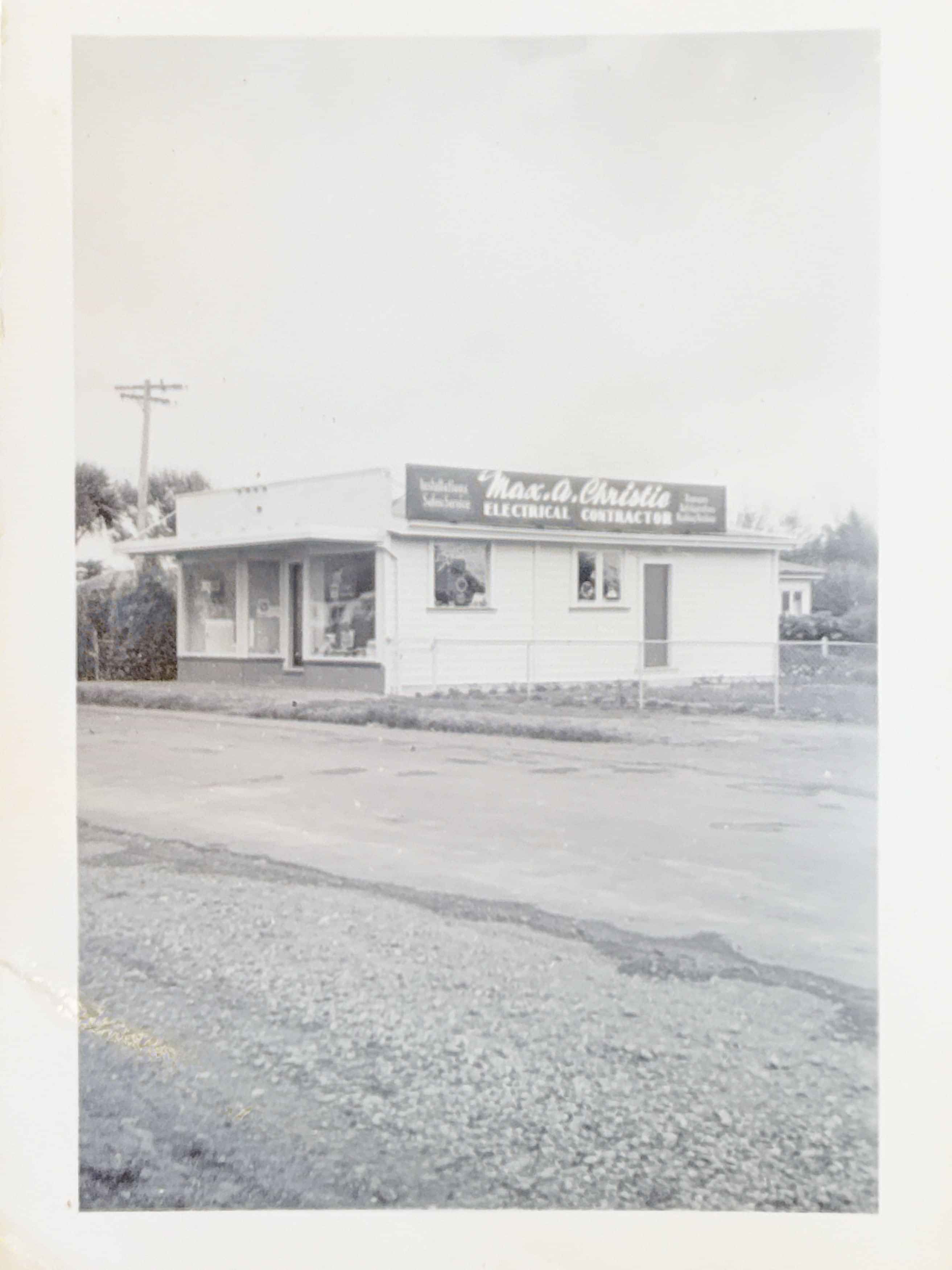 But the story of this little white building goes back even further. Long before the shop was filled with roses and lilies, it was home to a well-known electrical workshop. Operated by the Christie family, locals brought their radios and televisions here to be repaired — a central part of community life in Orewa at the time. Many long-time residents still recall visiting, and if you look closely today, you can still see the faint outlines of the painted words from that era on the windows.