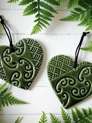 Michelle Bow Ceramic Kowhaiwhai Swinging Heart