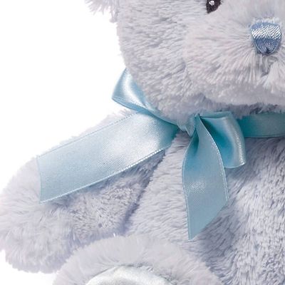 Crafted from the softest plush fabrics with baby-safe embroidery, this 25cm blue My First Teddy features the sweetest satin paws, an organza ribbon around his neck and an embroidered foot pad that reads ‘My First Teddy’.