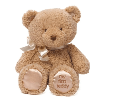 Crafted from the softest plush fabrics with baby-safe embroidery, this 38cm tan My First Teddy features the sweetest satin paws, an organza ribbon around its neck and an embroidered foot pad that reads ‘My First Teddy’.