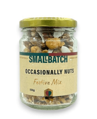 • Small Batch Occasionally Nuts Festive Mix 150g – a gourmet blend of roasted nuts and spices crafted in small batches and presented in a stylish jar.